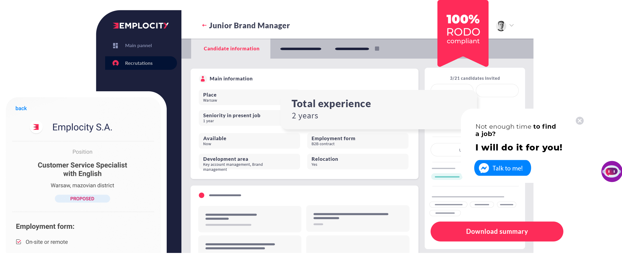 Support the recruitment process and preselection of candidates with the use of an intelligent chatbot, saving recruiters’ energy and time. Respond to candidates’ frequently asked questions, carry out an initial recruitment interview and collect applications.