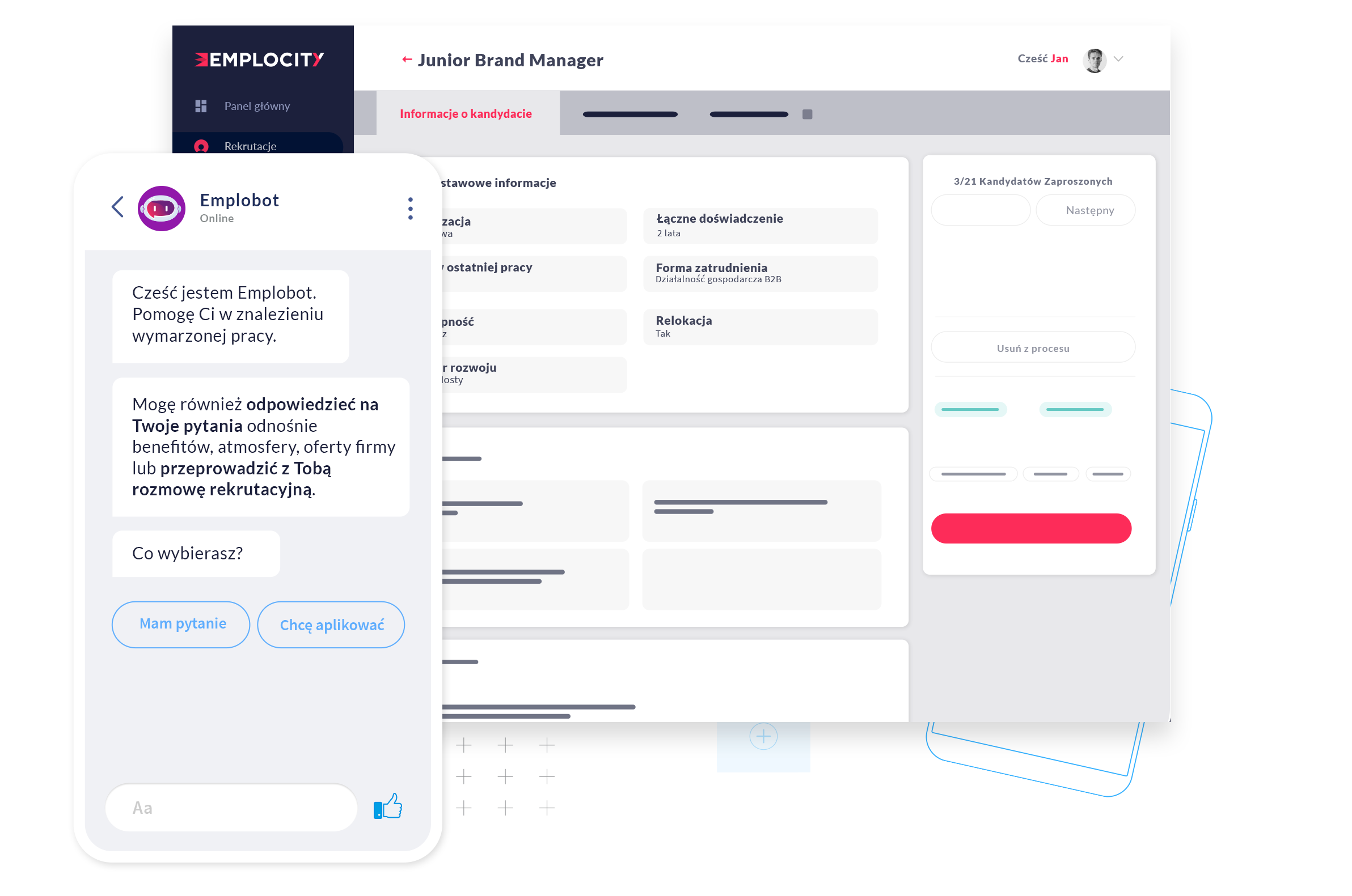 Połączenie dla kandydatów modułu rekrutacyjnego wraz z możliwością wygodnego zadawania pytań było dla nas naturalnym kierunkiem. W ten sposób powstał jeden produkt - Emplobot, umożliwiający automatyzacje całej komunikacji z kandydatami.