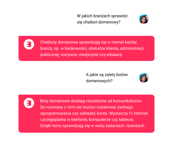 w formie interaktywnego FAQ, gdzie chatbot odpowiada na pulę powtarzalnych, standardowych pytań klientów, których może być nawet kilkaset dziennie.